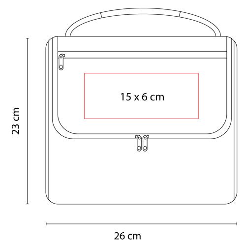 Interior plastificado. Bolsa principal y frontal con cierre. Bolsa lateral de red, asa de agarre superior y correa ajustable.