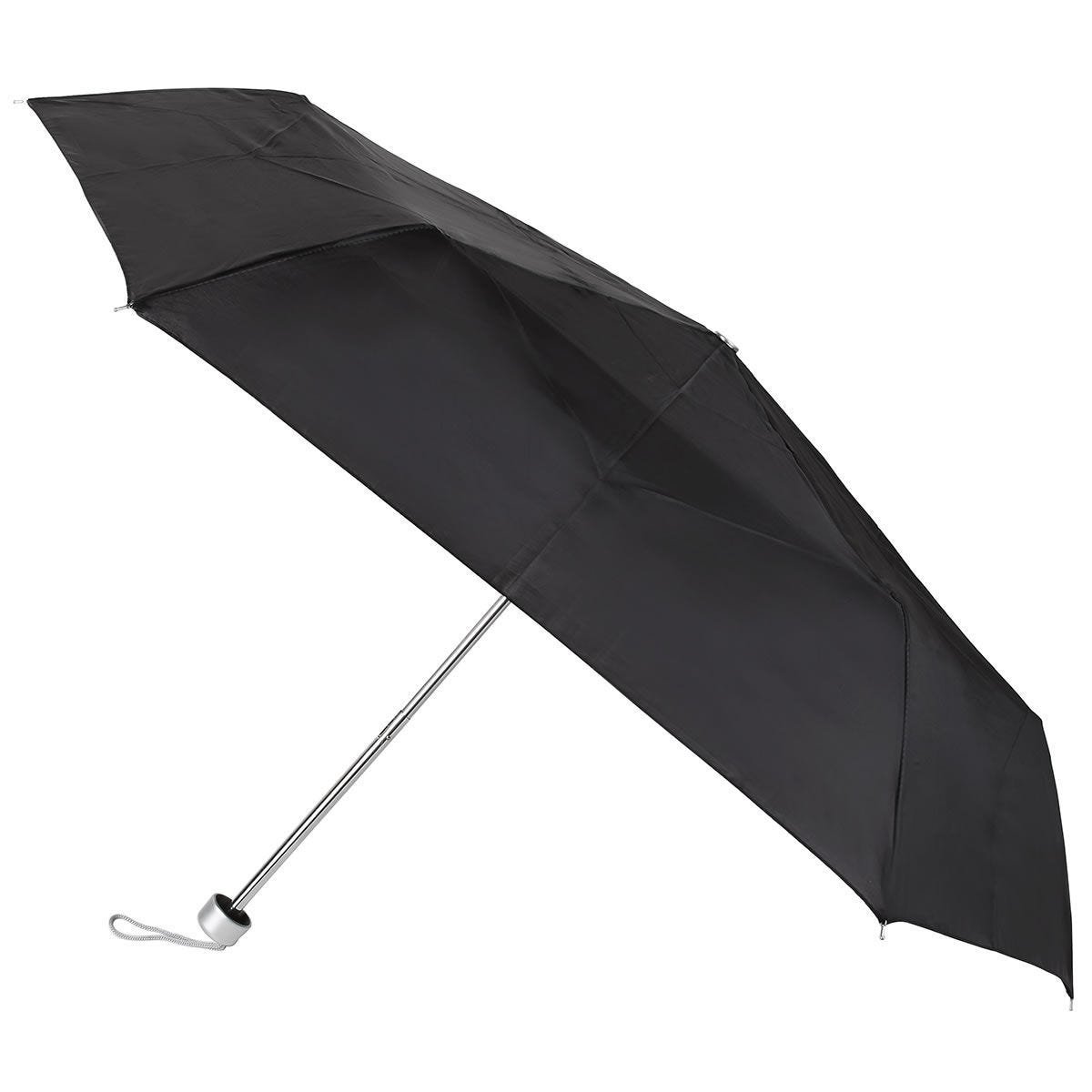 Manual. 6 Paneles. Paraguas de bolsillo con mango de plastico. Incluye funda.